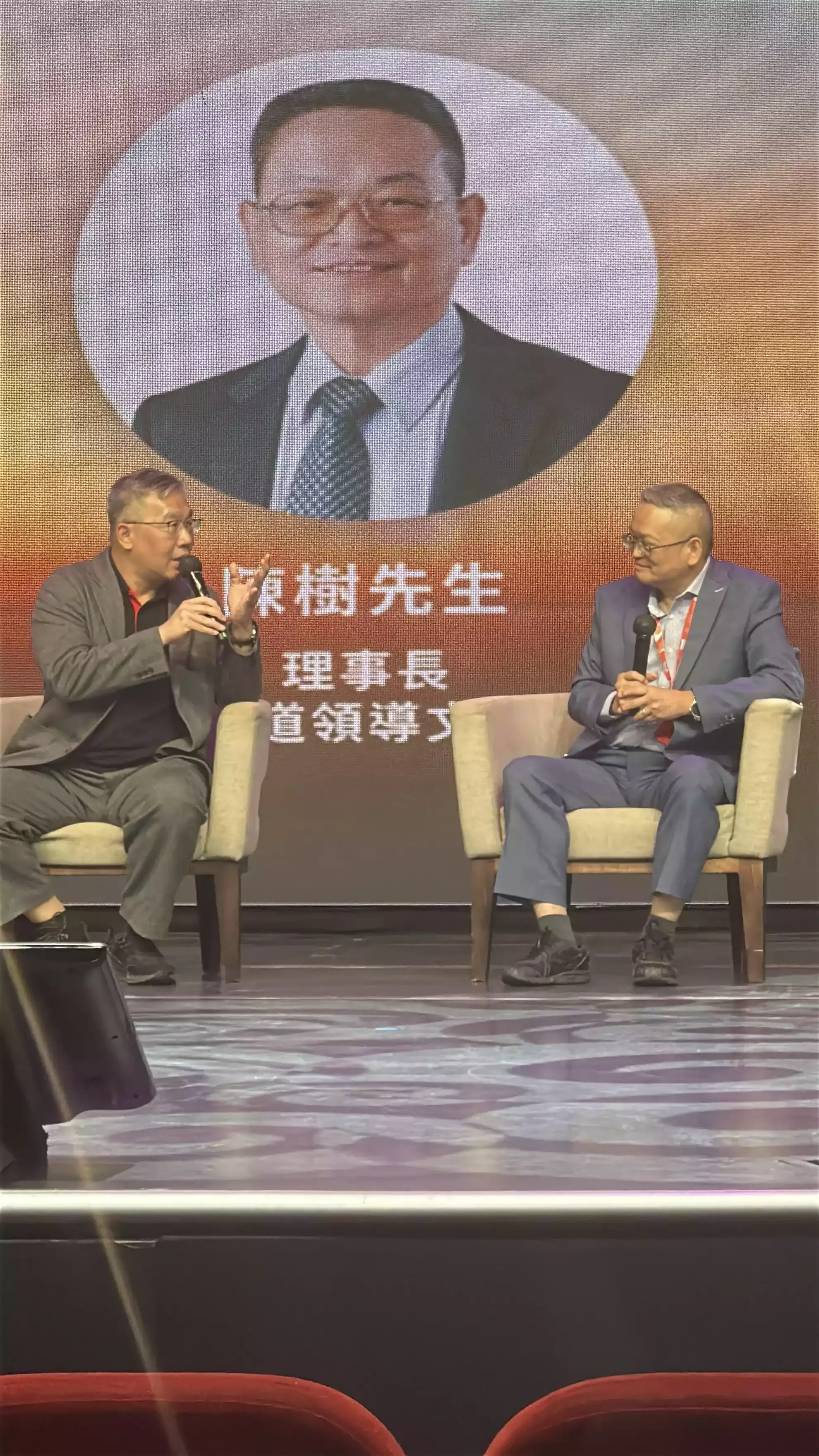 圖說:「探索無限機遇:共創新未來」國際論壇,由新明日報總編輯朱志偉(左)主持,理事長陳樹(右)分享中道哲學觀點